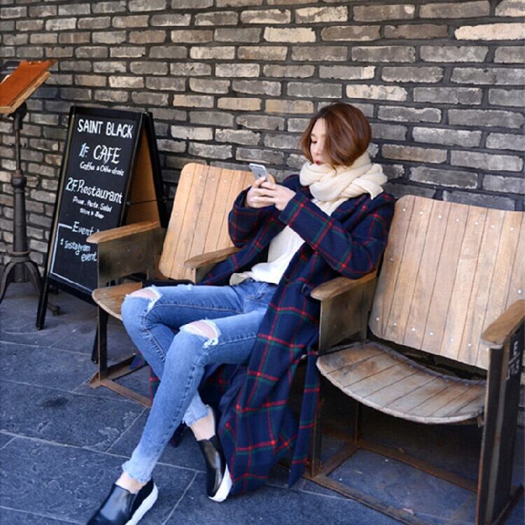 △ オシャレで暖かい秋冬コート。トレンドのチェック柄がポイント。 このチェックロングコートは、おしゃれさと暖かさを兼ね備えたアウターです。秋冬のトレンドであるチェック柄が特徴で、おしゃれなスタイリングにぴったりです。長めの丈は体型をカバーしながらもスタイリッシュな印象を与えます。