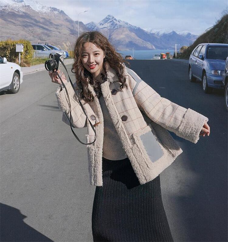 暖かい チェック柄ショートチェスターコート