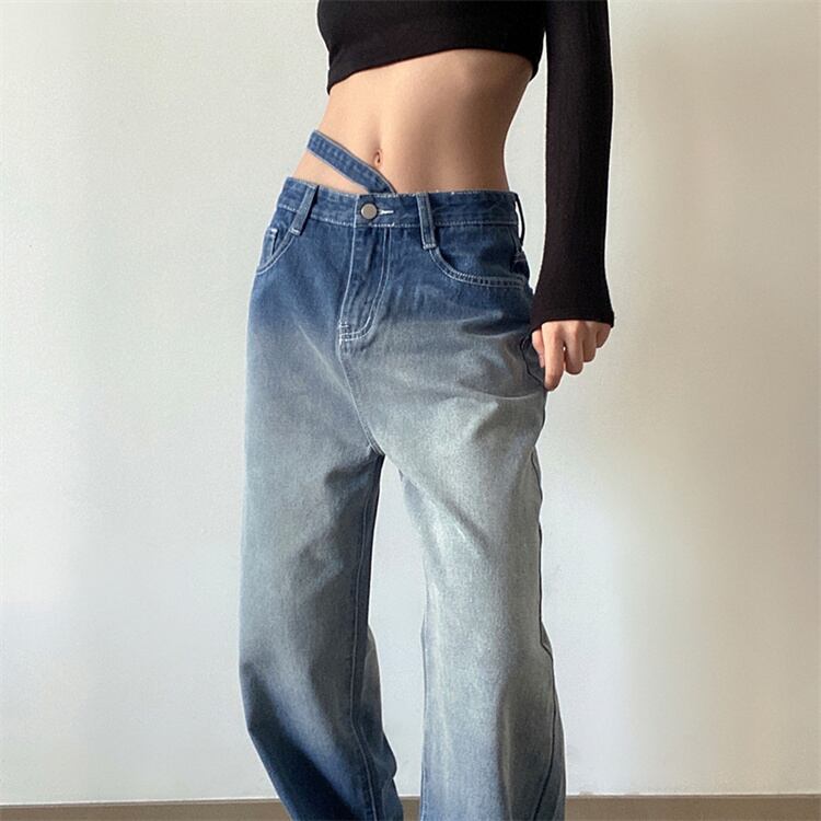 △ 大胆で個性的なグラデーションデザインが特徴のジーンズ。カジュアルながらもオシャレな印象を与える一着です。洗練されたデザインと快適な穿き心地を兼ね備えたグラデーションデザインジーンズは、あなたのスタイリングに幅広いアクセントを与えてくれるはず!