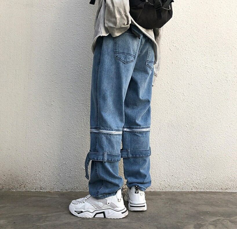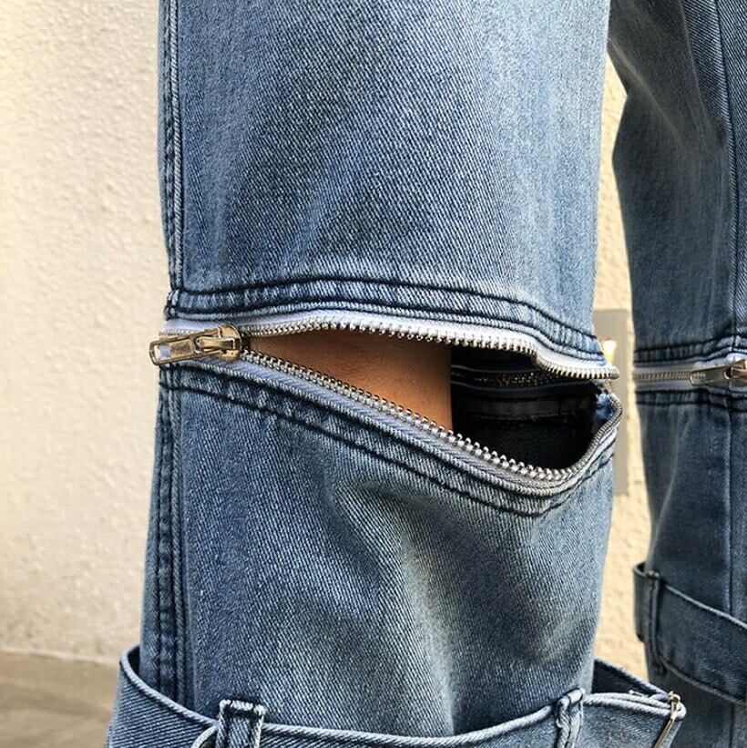 両足にジッパー付きでダメージ風にもできます。ジッパーは脚周りを一周できます。レッグベルトも付いていてインパクト大です!