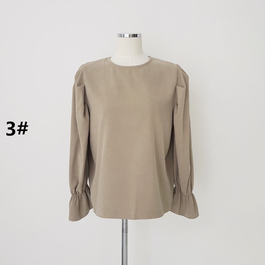 △ 甘くなりすぎない、上品なフェミニンスタイルに仕上げてくれるスタイリッシュなラウンドネックブラウスです。シンプルなデザインながらも、袖口の可愛らしいギャザーがアクセントになっています。さらりとした着心地の良い素材を使用し、快適さも追求しました。様々なコーディネートに合わせやすく、オフィスやカジュアルなシーンで活躍してくれます。着心地の良さと上品さを備えた一枚で、女性らしさを引き立てましょう。