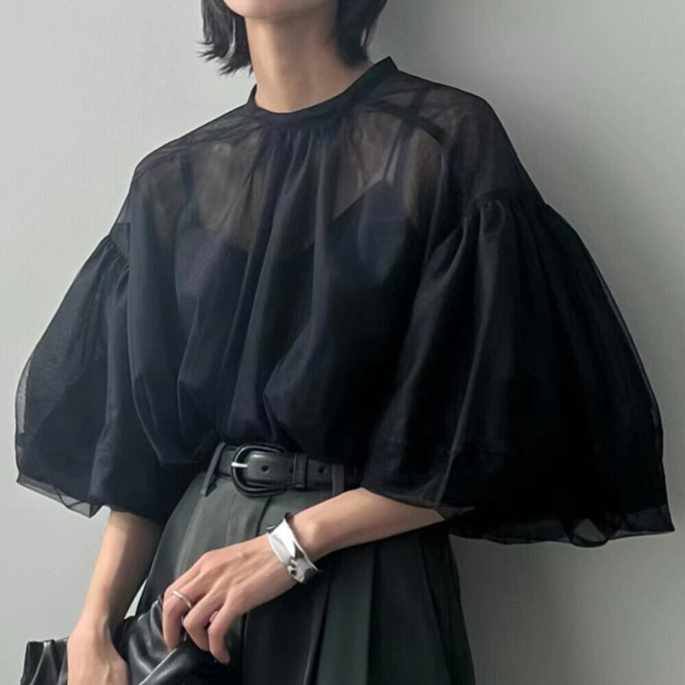 △ バルーン袖ブラウスセットアップは、女性らしさとおしゃれさを演出する一枚です。バルーン袖デザインがトレンド感を与え、上品な印象を与えます。セットアップとしても単品としても着回しの利く優れたアイテムです。